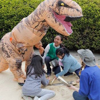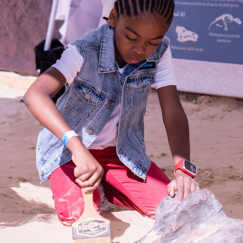 In your journey, you might uncover T-rex bones and teeth, an egg nest with a baby Maiasaura, a 6-foot-long Triceratops skull, and even a dragonfly fossil! We have many new surprises this year, including a zone with Jurassic marine reptiles!