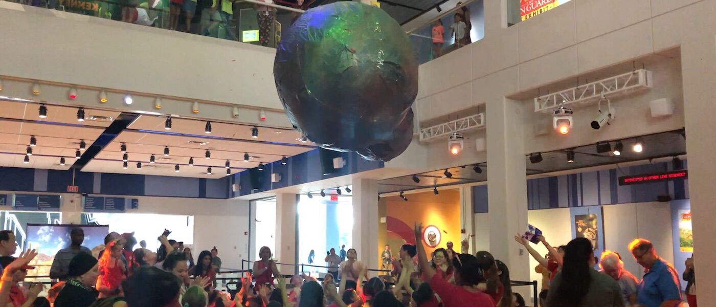 This giant asteroid was created right here at LSC. Our team spent hours using beach balls, saran wrap, craft paper, duct tape, paper mache, and more to make an asteroid that brings the house down!