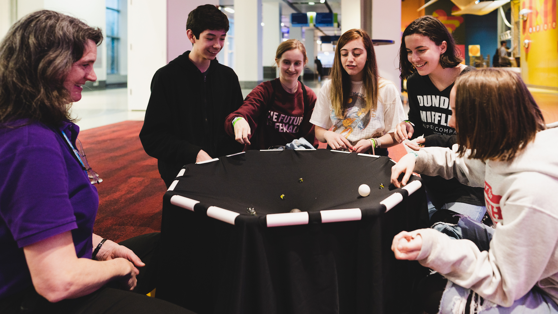 Kids also tried some of our space activities such as the “Gravity Well,” which uses tiny toy spheres to visualize gravity.