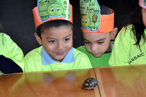 Spotted at LSC today: A dozen preschoolers from the Passaic Family Head Start wearing awesome hats to celebrate Tortellini’s birthday. We were so impressed that we took Tortellini out of his tank so the kids could get a better look — and sing Happy Birthday!